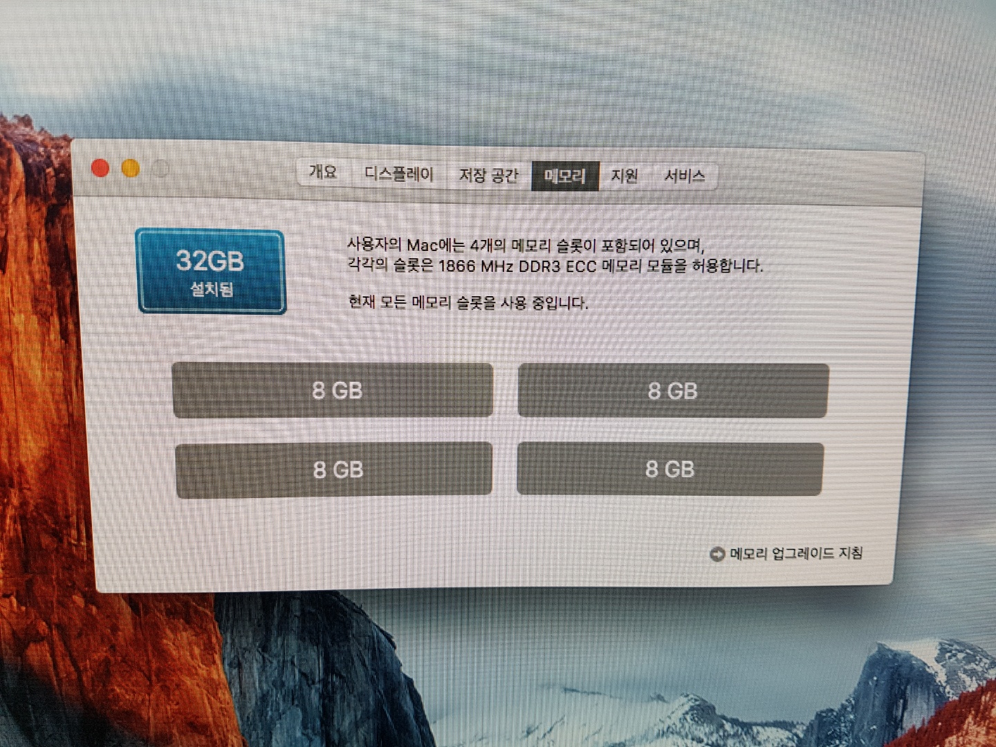 Memory = 32GB(4x8GB)의 1866MHz DDR3 ECC